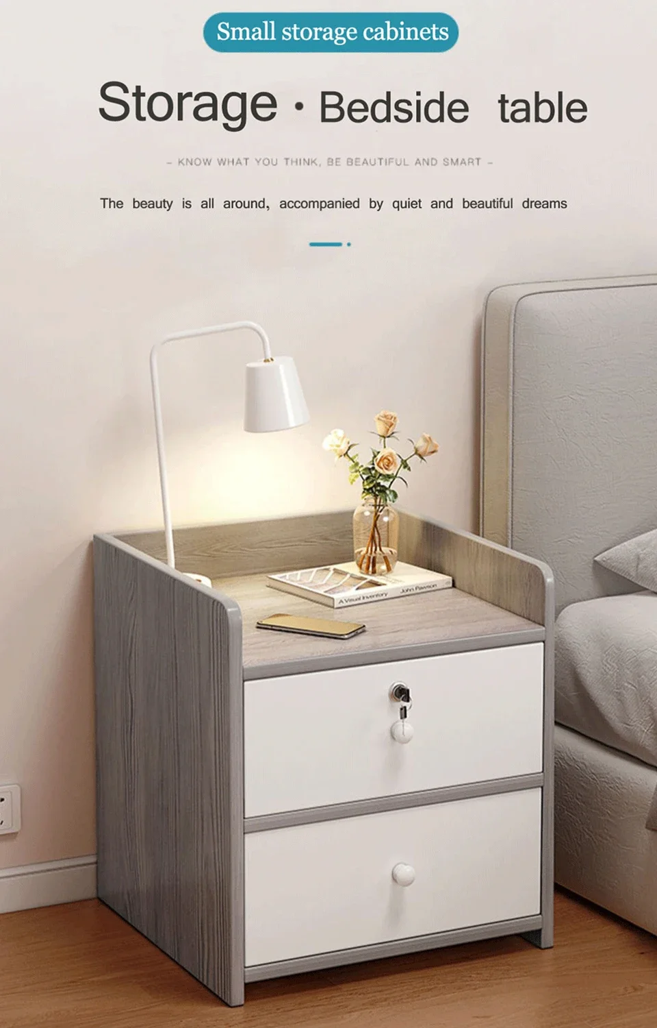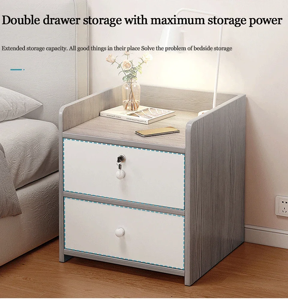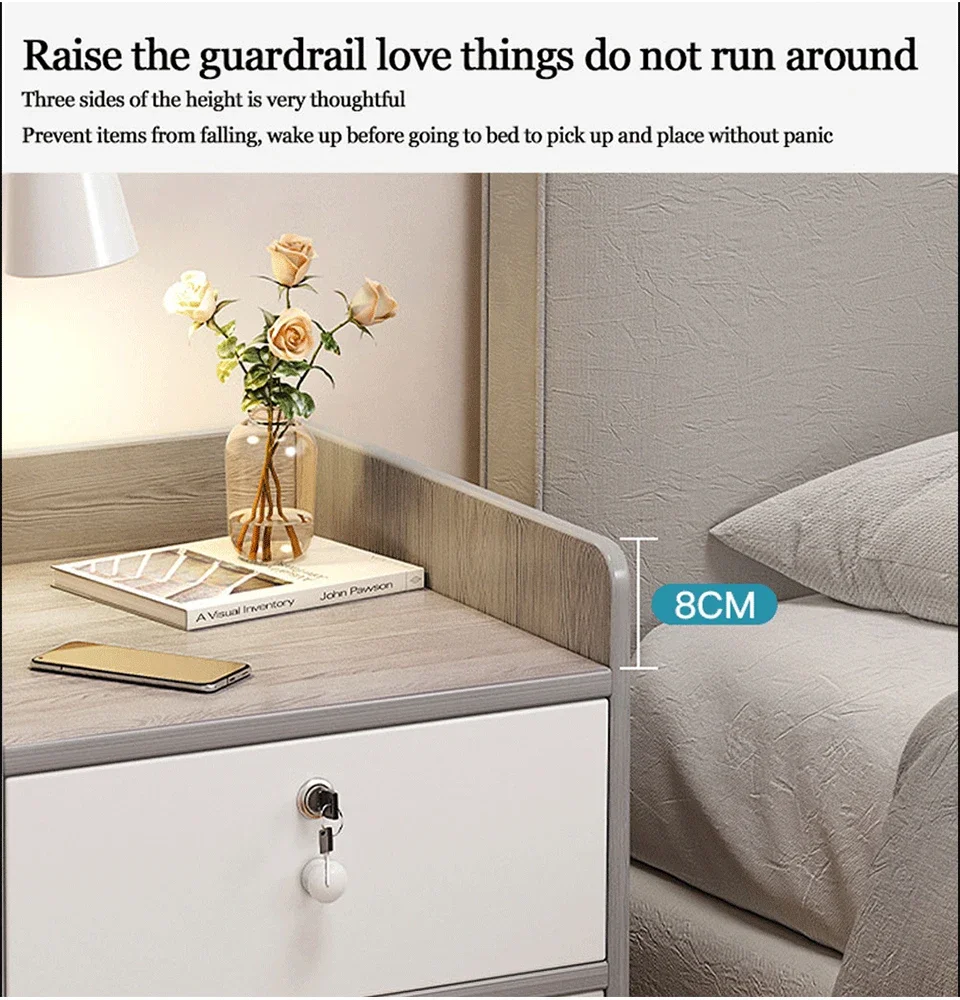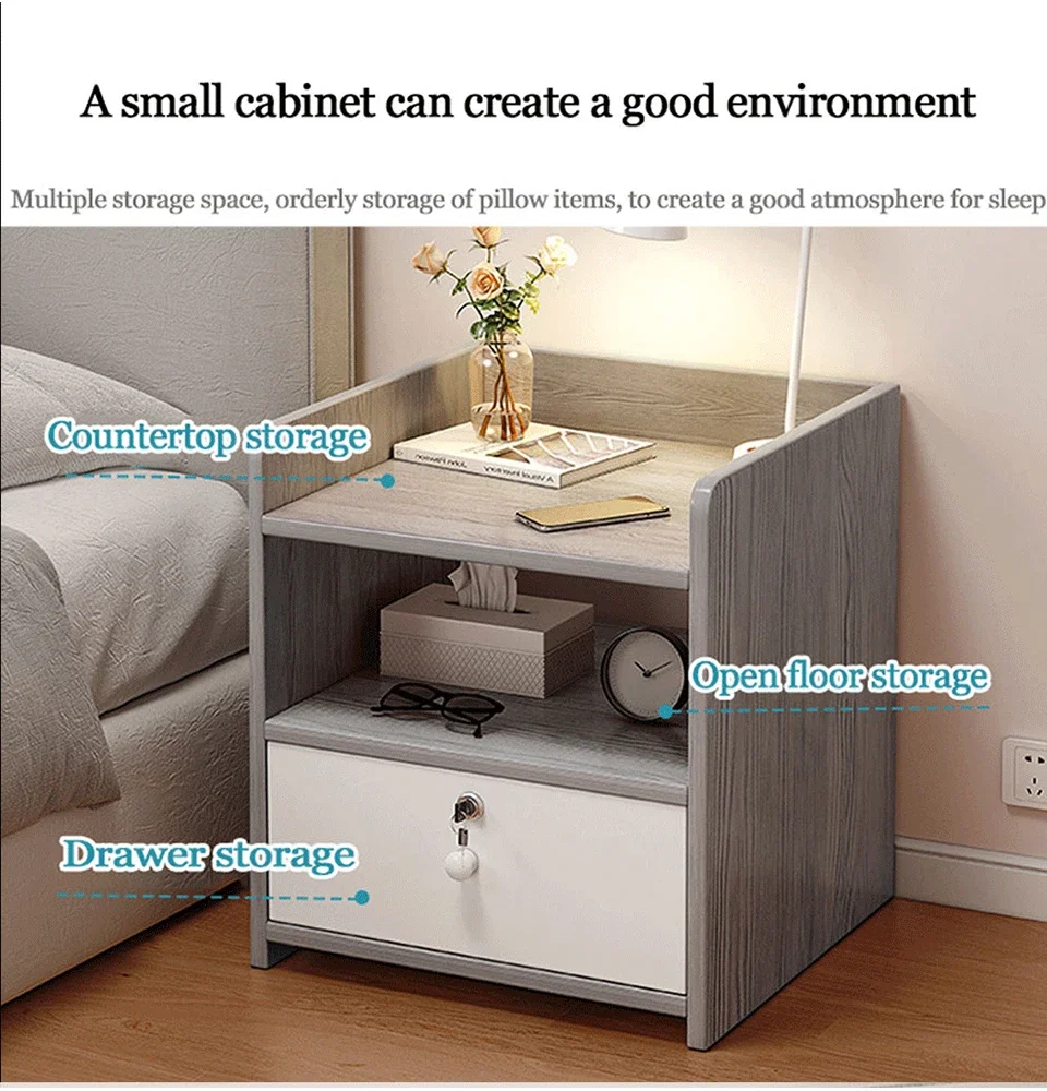 درج طاولة بجانب السرير بسيط وعصري على الطراز الاسكندنافي مع قفل تخزين منضدة ليلية خزانة تخزين متعددة الطبقات أثاث غرف النوم